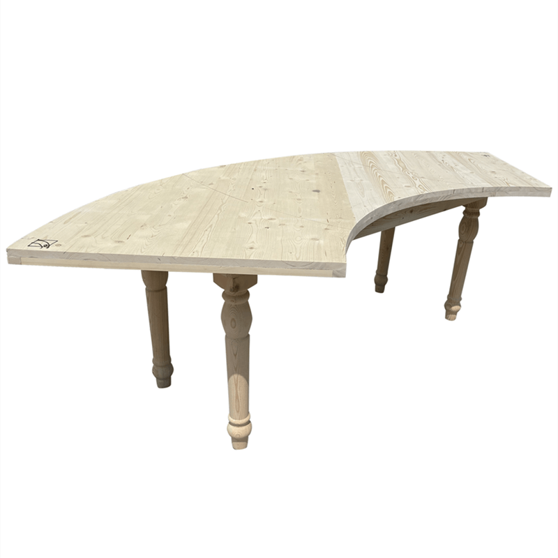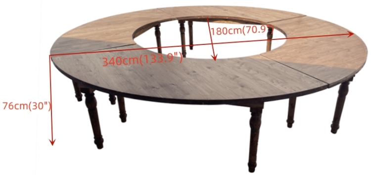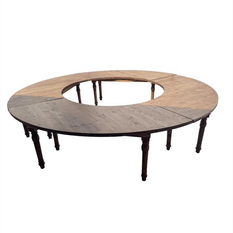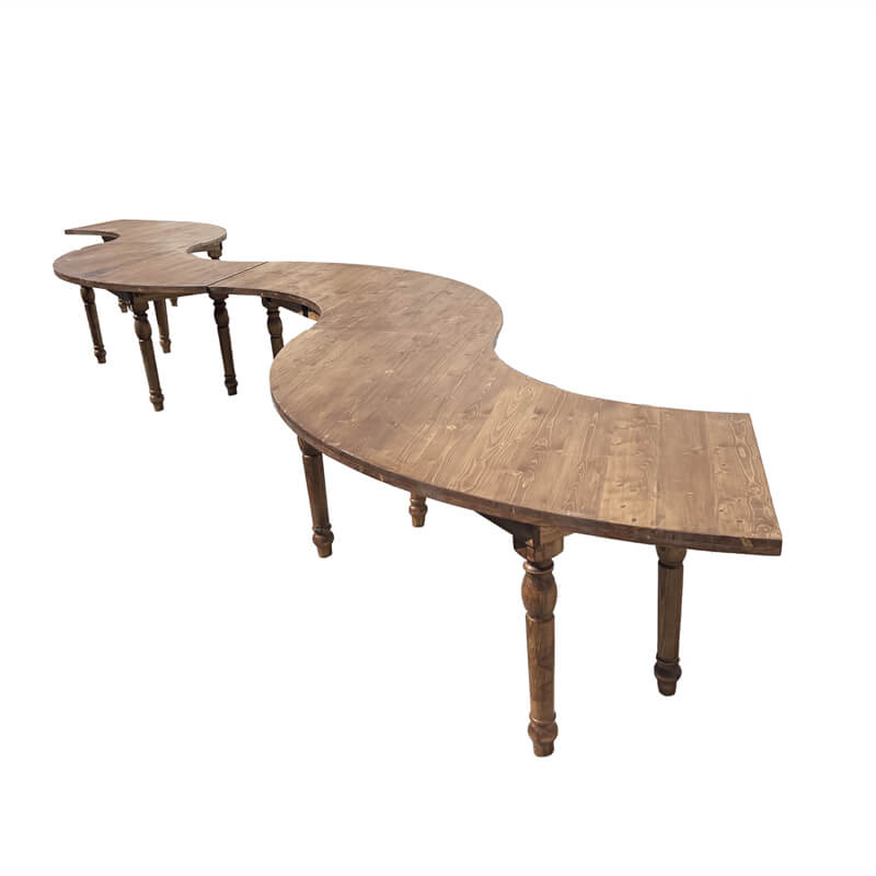 This half-round wooden table allows you to create a snake, half-round or full-round table. The dining table
