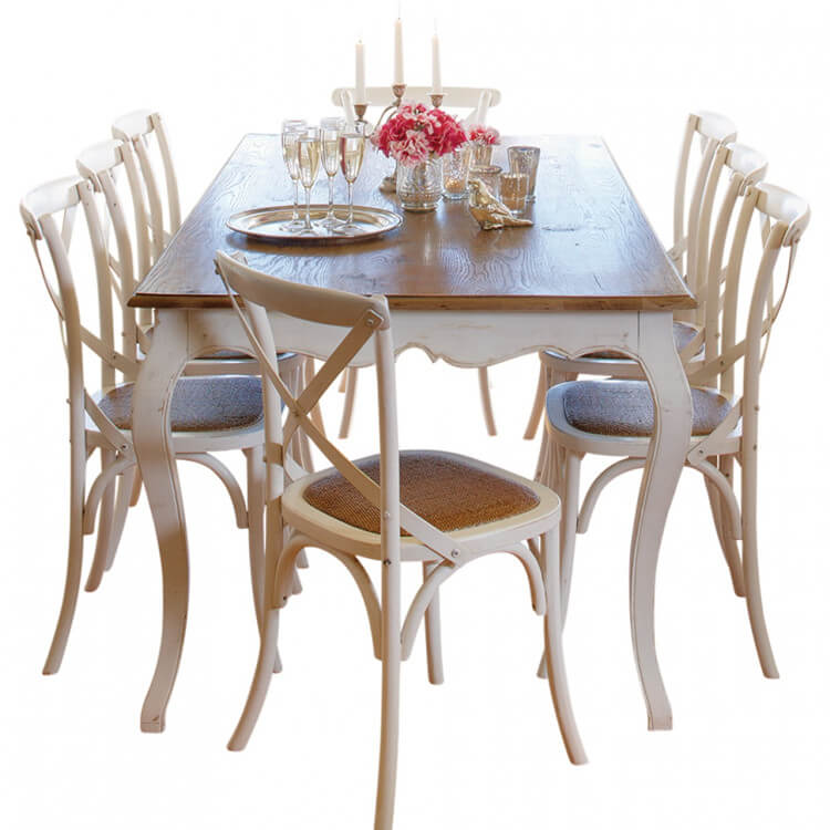 Because of the barn style, the barn generally adopts the original wood color tone, so the wooden chairs equipped are basically matched around this style. Here we specifically refer to the wooden cross chair and the wooden Louis chair, whether it is a wooden cross back The iron back, whether it is brown or brown, is based on the original wood color selection.