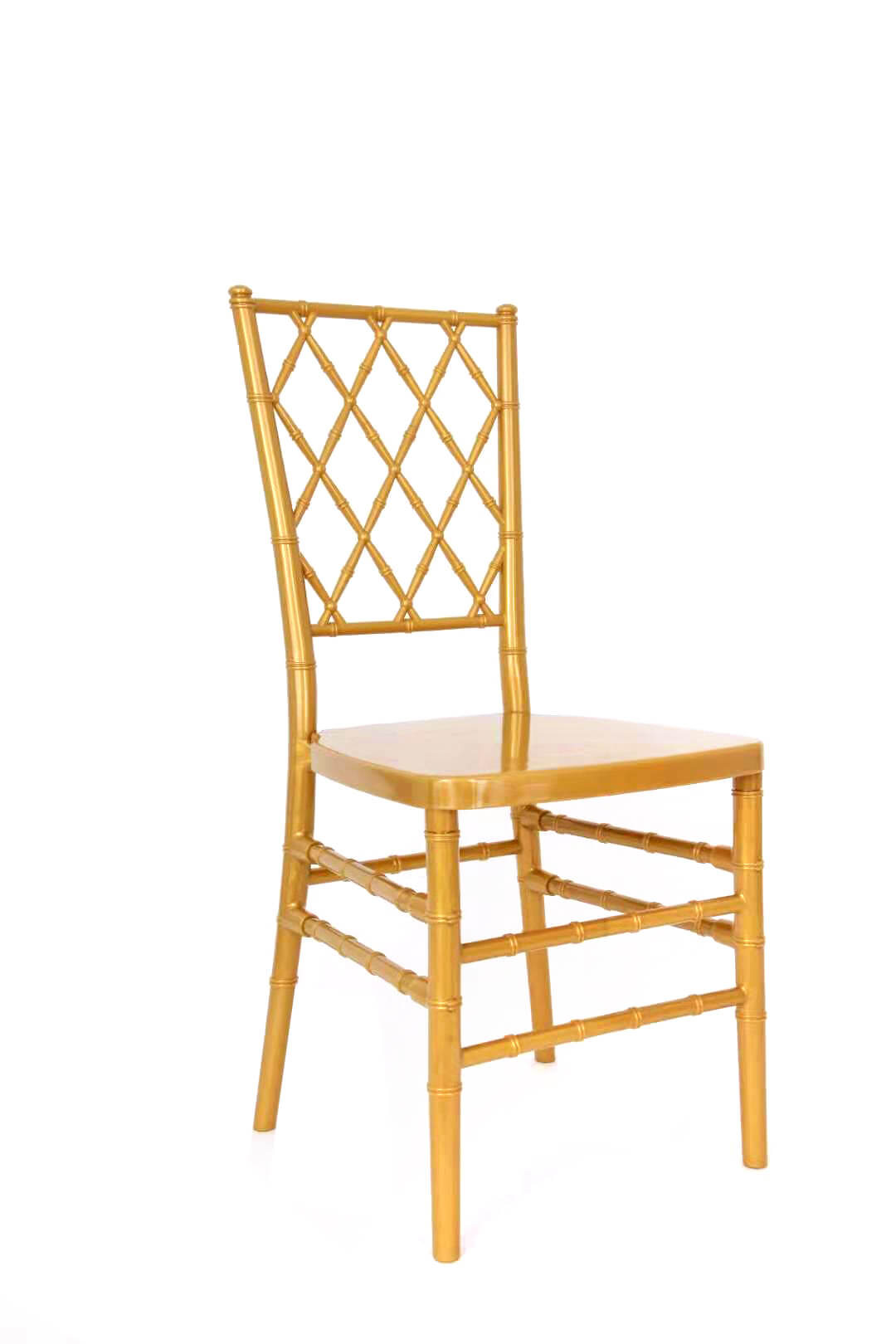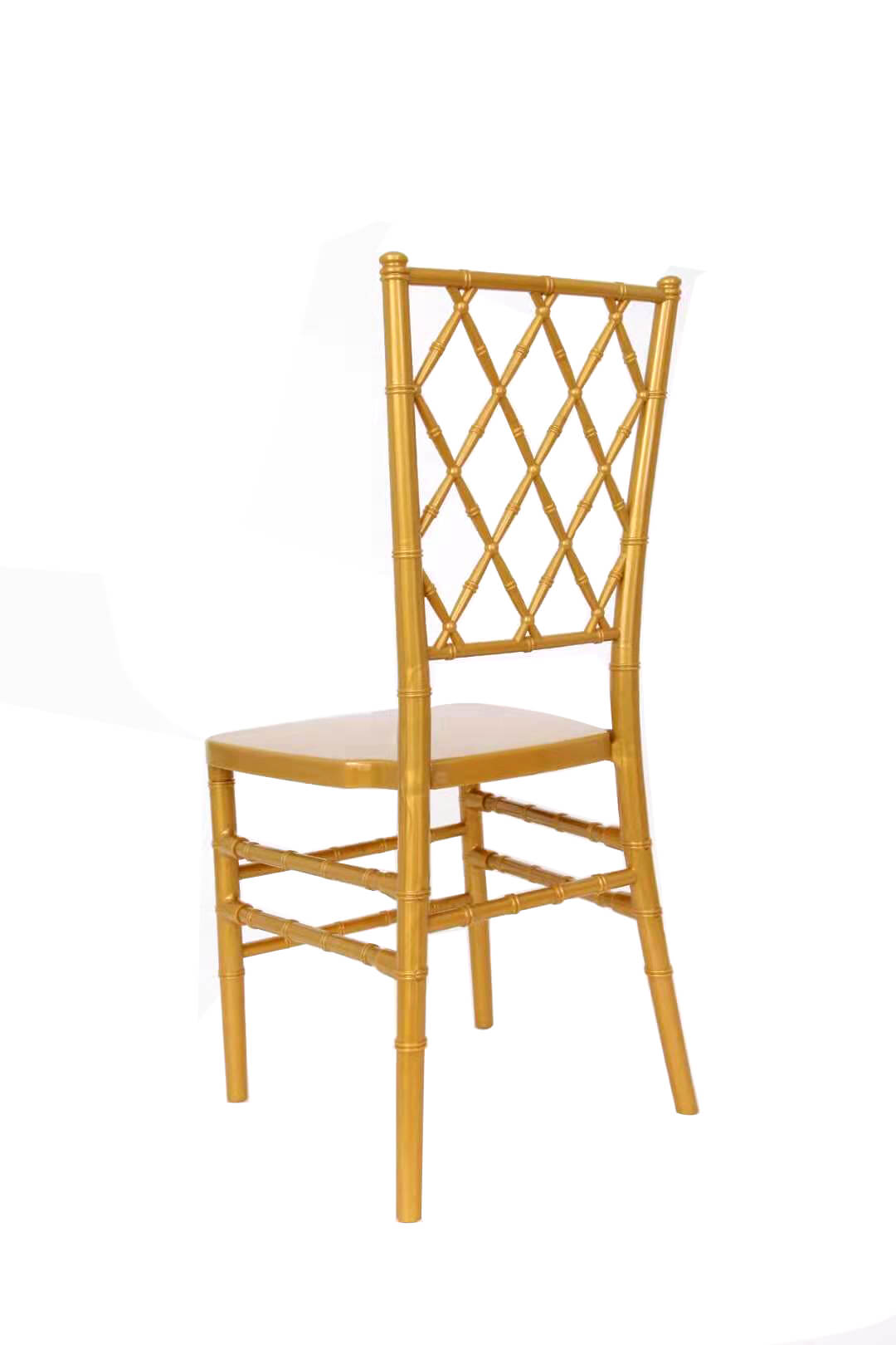 This model of resin Chiavari diamond chairs, you can also call it as ” net back chairs” because of the back design. At moment, the gold dinning chairs are so popular in South Africa market, and clear color will be more popular in middle Europe country. As one serious manufacturer, we insist on buying imported pc material and use experience works for production of our resin wedding chairs. Refuse poor quality of event chairs, in order to let the party rental company can rent the chairs many many times no damage.