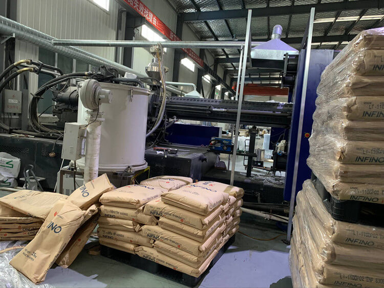 Workers put the PC material into the advanced machines automatically. And they are melted ready for shaping