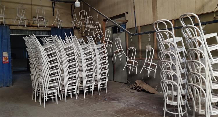 The stack-able Thonet chair needs at least to coat three finishes, spray paint manually. Every chair should