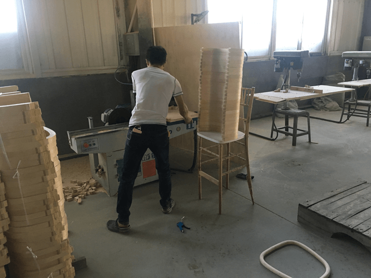 This chair that’s been assembled and hasn’t been coated yet, The wood used for the chairs is flawless and