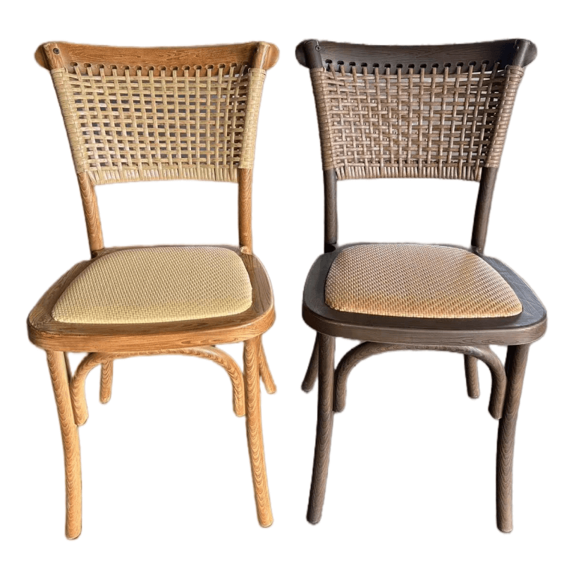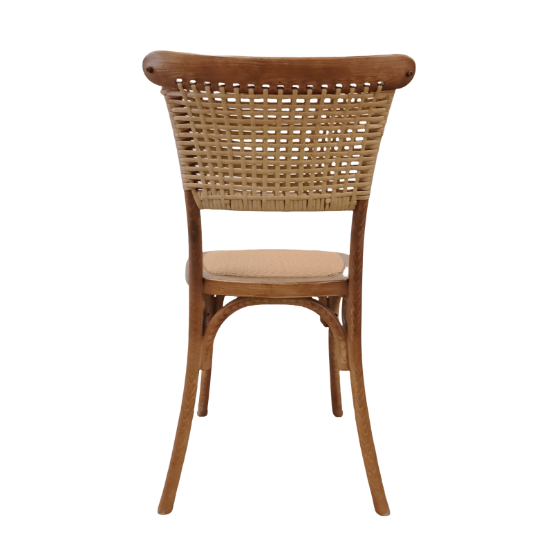 Experienced craftsmen evenly weave the flexible rattan into the resin crossback chair frame, maintaining just